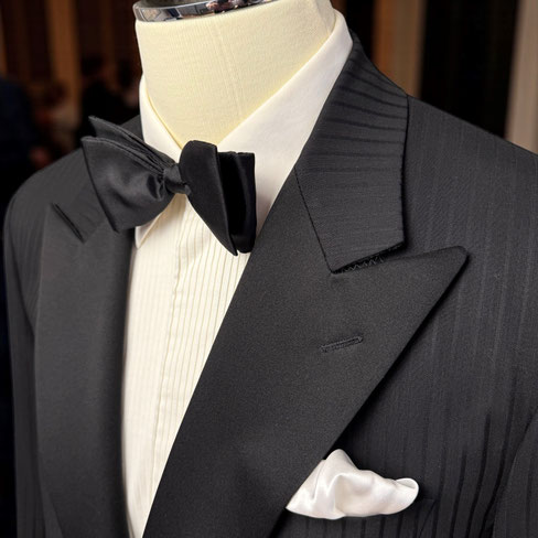 Ist auf einer Einladung „Black Tie“ als Dresscode angegeben, ist der Smoking die klassische Wahl für formelle Anlässe wie Hochzeiten, Silvesterfeiern oder festliche Operngalas. Bei der Anfertigung eines individuellen Maß-Smokings wählen Sie aus zahlreichen Modelloptionen – ganz nach Ihrem persönlichen Stil. Die Smokingjacke kann ein- oder zweireihig gefertigt werden, wahlweise mit Spitzrevers oder traditionellem Schalkragen.